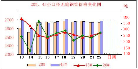 今日聊城無縫鋼管小口徑價格行情,20#、45#材質,10月13-22號價格變化走勢圖,更直觀的讓采購客戶了解現貨價格及庫存走勢,實時顯示最前沿價格調整預測,為您提供最及時有效的價格參考建議。